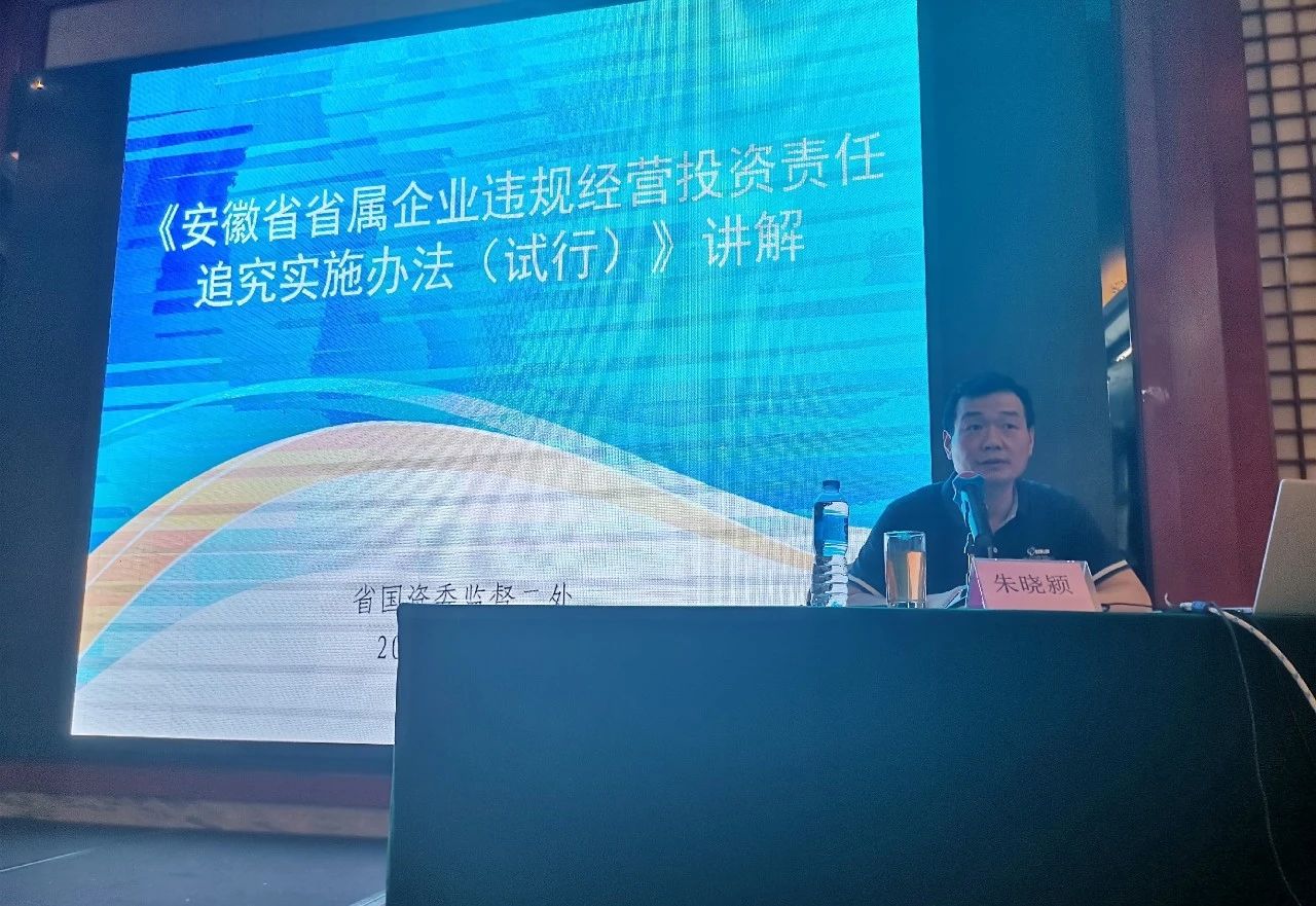 此次培訓邀請了省國資委監督二處朱曉潁處長、省產權交易中心產權一部魯嵐部長授課。朱曉潁對《安徽省省屬企業違規經營投資責任追究實施辦法(試行)》作了全面解讀,魯嵐則從實務操作方面詳細介紹了企業國有資產交易流程。